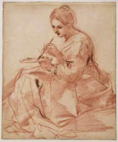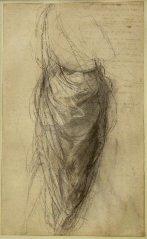 In order to to do this, we began by considering an interestingly 'liminal' object in the European Renaissance Gallery: a brush rendition of the Holy Family attributed to Michelangelo. This artwork is 'liminal' because even though we would probably consider it a drawing, it is framed and hung up in a room filled with Renaissance paintings and displays certain characteristics more readily associated with painting, including the use of a brush and painting ground. This object raises questions about genre (how do we decide what is a drawing and what is a painting?) but also about intention: what is the relationship between an artist's aims for an artwork and the object that we see and interact with? Drawings provide an interesting medium through which to analyse these questions, particularly drawings such as this Michelangelo piece which bear traces of the artist's experiments and 'workings out' on their very surface.