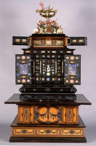 In the strictest sense, a cabinet of curiosities is precisely that: a single, freestanding piece of furniture containing numerous compartments packed with exotic and instructive natural and artificial objects. Unlike the larger collections assembled episodically over time, cabinets of this kind were typically conceived as a whole and executed in their final, complete form as encyclopaedic overviews of whole worlds of culture and learning in the most compact possible form. While several of these cabinets survive, only one -- given by the city of Augsburg in 1632 to the Swedish king, Gustavus Adolphus -- survives with its original contents intact.